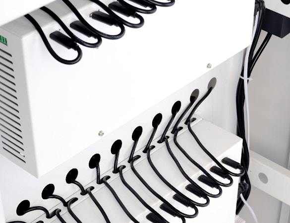 Der Predia Cart UV-C eignet sich für verschiedene Anwendungen, darunter Bildungseinrichtungen, medizinische Einrichtungen, Büros und mehr. Im Inneren des Wagens können Benutzer Geräte sicher aufbewahren, aufladen, desinfizieren und transportieren. Das robuste Design und die leichtgängigen Räder machen den Transport der Geräte einfach und sicher.