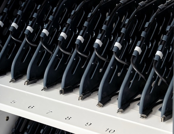 Vollständig ausgestatteter Predia Cart mit integrierten USB-Typ-C Kabeln